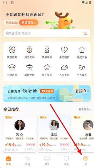心鹿心理咨询是一款专业的心理健康软件,能为咱解决不少心理方面的问题。它提供一对一心理咨询服务,不管是遇到短暂的情绪困扰,还是家庭教育难题,都能帮咱科学应对。软件界面简洁,操作起来很便捷,能让心理健康管理变得轻松,助力咱开启心理成长之旅。它有专项咨询分区,能精准覆盖情感修复、婚恋关系等多个问题方向。还有陪伴式管理,搭配专家直播,推动用户结伴成长。另外,它结合社会热点解读心理知识,能帮咱通过热点围观实现自我疗愈,而且以调研数据为支撑,针对性提供科学的家庭教育指导方案。关于它是否可靠,其关联公司为台州六路科技有限公司,是提供心理咨询服务的机构,咱可以结合资质认证与用户反馈综合评估。有心理方面需求的朋友不妨试试这款软件。