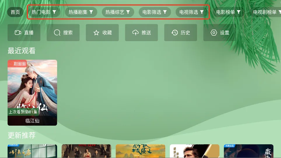 3.直接游客登录,无需注册,开始畅享各种影视内容!历史观看就在主页面。