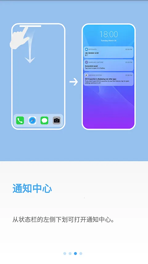 从状态栏的左侧下划可打开通知中心。