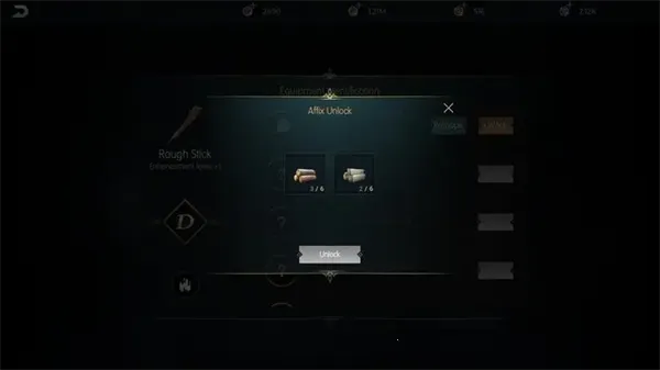 例如,我们需要一些木头来解锁 Rough Stick 的插槽。