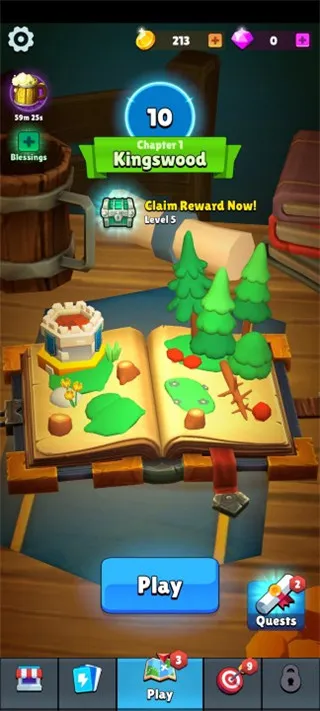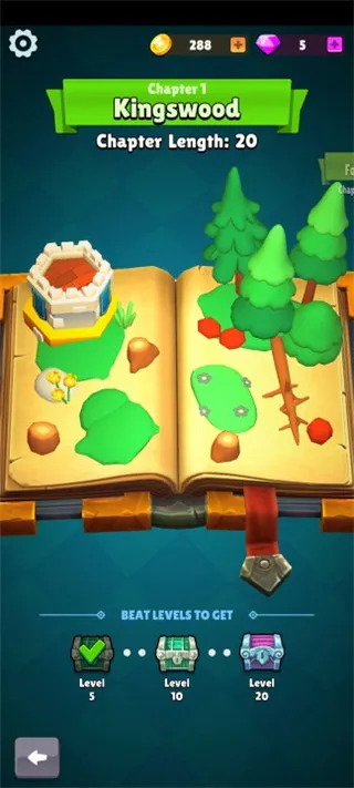 2. 增量式玩法,收集战利品卡片升级塔和弓箭手提升战力,击杀怪物进入下一场景。