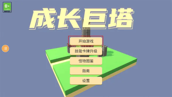 1、打开游戏,会看到有几个功能按钮:开始游戏、技能卡牌升级、怪物图鉴、指南、设置,点击“开始游戏”。