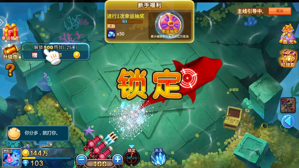 2、使用下方技能[锁定]可以自动选中鱼种进行自动发泡。